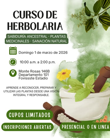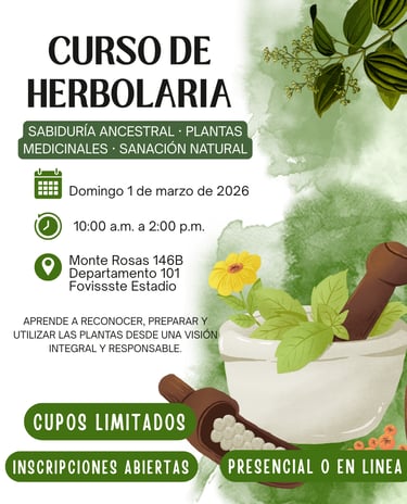 Curso de Herbolaria, un espacio de formación dedicado al reconocimiento, preparación y uso tradicional de las plantas, desde una visión integral, consciente y respetuosa.