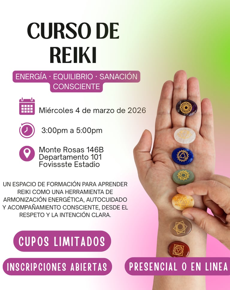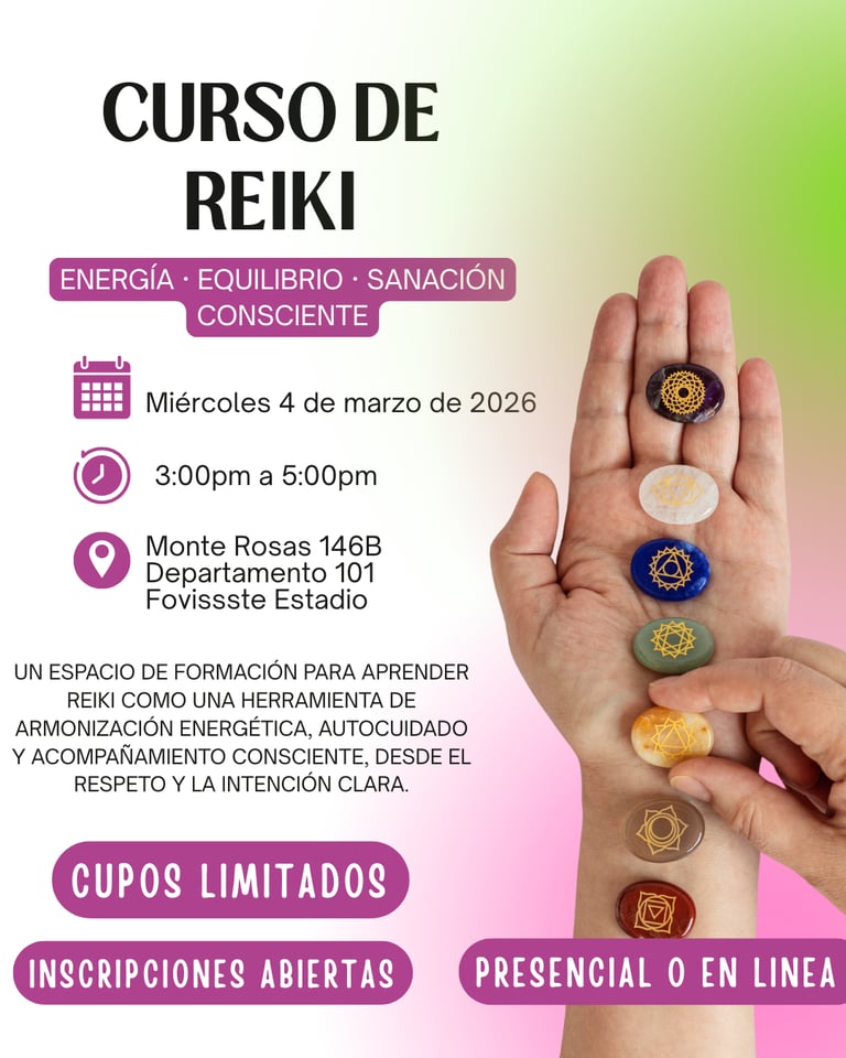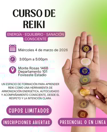 Aprende Reiki como una herramienta de autocuidado, equilibrio energético y acompañamiento consciente, desde una práctica responsable y respetuosa.