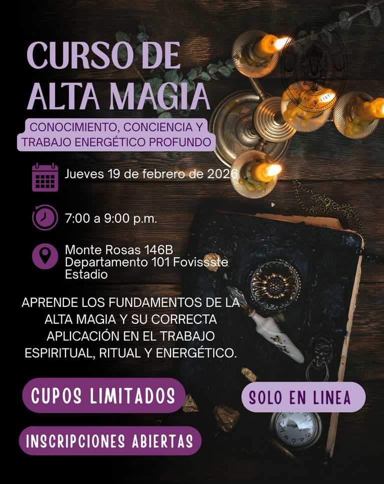 Adéntrate en el estudio ceremonial de la magia y el manejo consciente de la energía. Aprenderás rituales, simbología, protección, manifestación y trabajo con fuerzas sutiles para potenciar tu crecimiento espiritual. Un camino formativo para quienes desean desarrollar su poder interior con disciplina, conocimiento y propósito elevado.